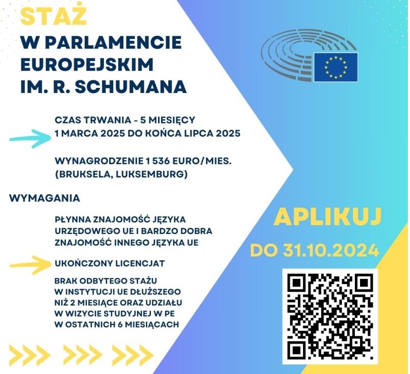 Link do ogłoszenia o stażu w Parlamencie Europejskim na naszym profilu LinkedIn znajdziecie Państwo tutaj: